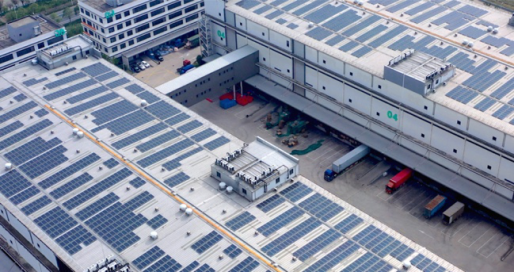 从广州增城园区,到东莞清溪园区、杭州下沙园区、上海嘉定园区、武汉黄陂园区、武汉江夏园区,再到比利时列日eHub,在菜鸟七大物流园区广阔平坦的屋顶上,一排排光伏板整齐排列,在阳光照射下熠熠生辉。