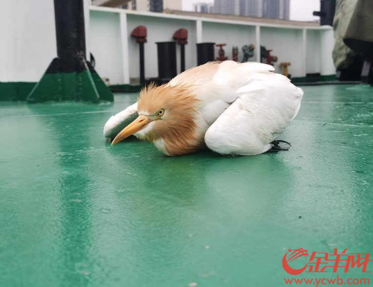 4月24日,羊城晚报全媒体记者从广东湛江海警局获悉,近日该局执法员救助了一只溺水的白色大鸟,经鉴定为国家“三有”保护动物牛背鹭。