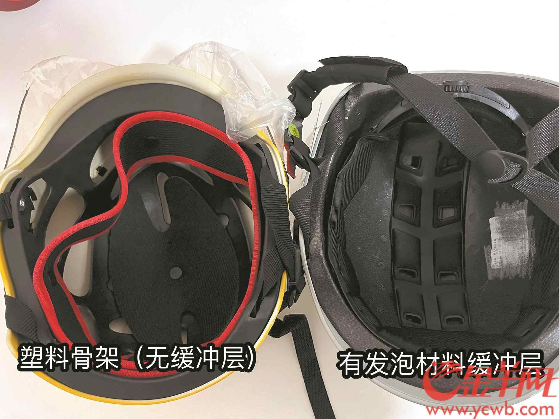 李志高进一步介绍,头盔不仅要有缓冲层,缓冲层密度还要足够高。如果缓冲层是软的,用手一捏有凹陷,这种头盔只能在撞击强度低时起到保护作用,力度稍微大一些,就难以有效保护。
