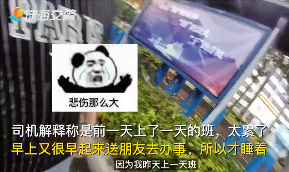 近日,珠海一名男子在等红灯时睡着了,车辆停在路口一动不动。珠海交警赶到现场叫醒司机,面对交警的教育,男子委屈地说道:“我很累很累,昨天上了一天的班。”