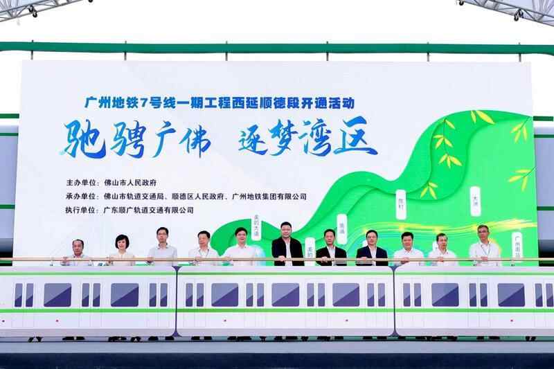 广州地铁7号线西延顺德段开通是广佛同城迈向广佛全域同城的重要标志之一,是广佛同城13载的重大战略成果之一,将广州科学城、广州大学城、广州南站和三龙湾科技城等重大区域性平台串联一体,成为广佛两地科技、产业、资本、人才等要素高效流动对接的重要通道和沟通纽带,对广佛携手打造“广佛极点”作用重大、影响深远。