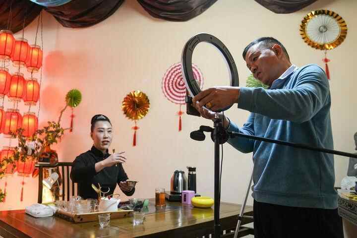 现在,她成为一名网络主播,在拼多多等网络平台直播卖货。拍摄茶叶制作视频、向网友普及茶文化,包装、发货,一天下来她嗓子都哑了。