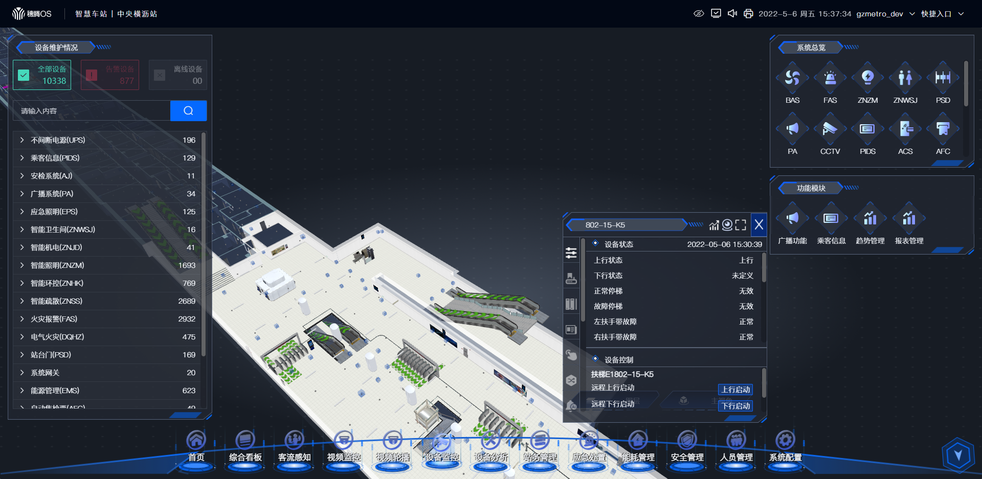“相关成果已在广州地铁3号线广州塔站及湾区最快地铁18、22号线示范应用,成效显著,大幅度提升了建设、管控、运营资源配置以及服务过程效率和安全水平。”广州地铁国家工程研究中心穗腾联合实验室负责人介绍,如基于穗腾OS平台研发的车站与区间智能防洪防汛解决方案,车站运营管理者可实时掌握车站的浸水位置、水量,以及应急物资分布等关键信息,一旦水位达到预警阈值,可以通过穗腾OS平台一键启动车站防汛应急预案,实现预警信息的自动推送,快速联动车站广播、扶梯、闸机等设备,有序引导乘客疏散。