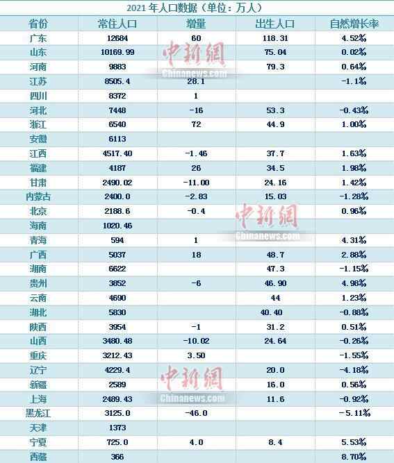 多个省份自然增长率是多年来首次转负。其中,江苏人口自然增长率为- 1.12‰,这是新中国成立以来,江苏年度人口自然增长率首次转负。
