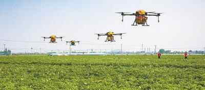 山东省坚持“动态清零”总方针,坚持高效统筹疫情防控和经济社会发展。图为滕州市界河镇房岭村,飞防大队正在用无人植保机防治马铃薯病虫害。 宋海存摄(影像中国)