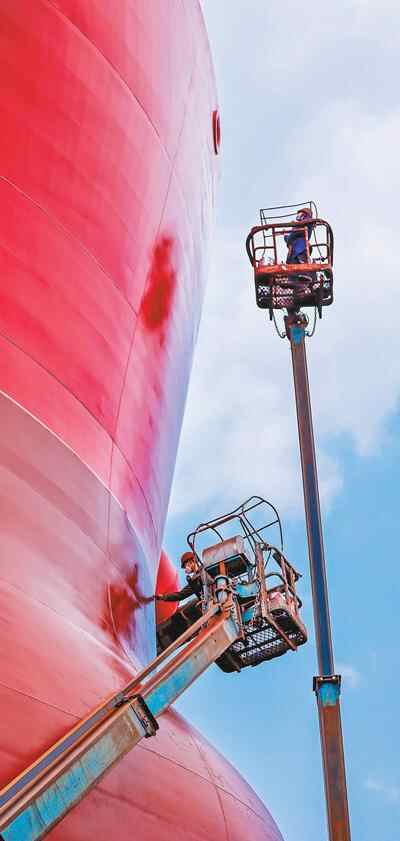 在疫情防控和安全生产两不误的前提下,广东中远海运重工码头,船舶修理工作有序进行。 付海燕摄(影像中国)