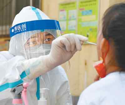 河南省郑州市经八路街道,医护人员在为市民做核酸检测。 新华社记者 李嘉南摄