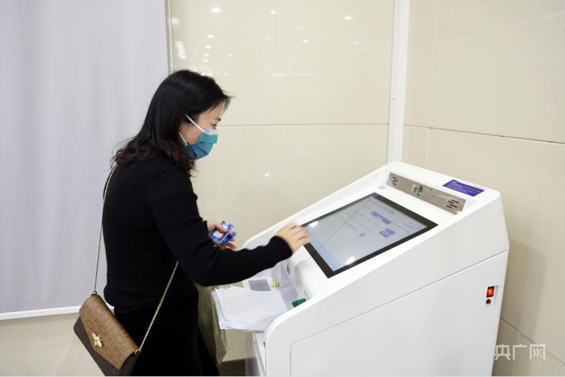 市民费女士在银行内的自助服务机上完成了近20家企业的对账单查询打印工作(央广网发 受访者供图)