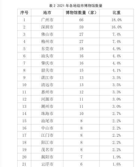 《报告》显示,2021年广东深入推进博物馆改革发展,推动广州、深圳、佛山、梅州、东莞、潮州等地“博物馆之城”建设,全省博物馆事业发展取得新的成效。