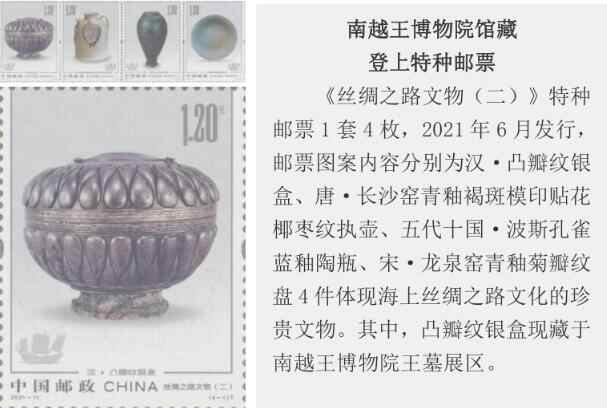 此外,广东民间工艺博物馆的陈家祠积木、深圳博物馆的“馆藏”系列文创产品获评“全国百佳文化创意产品”。南越王博物院馆藏珍贵文物凸瓣纹银盒作为图案登上《丝绸之路文物(二)》特种邮票。
