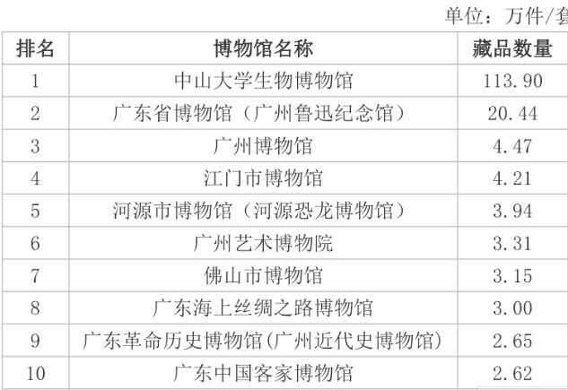 广州博物馆、江门市博物馆、河源市博物馆(河源恐龙博物馆)分列第三、四、五名。