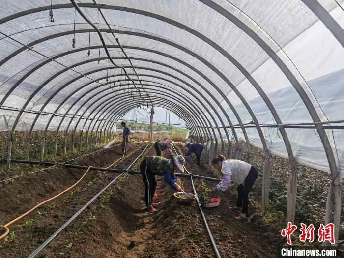 图为花农正在种植鲜花种苗。 开远市融媒体中心供图