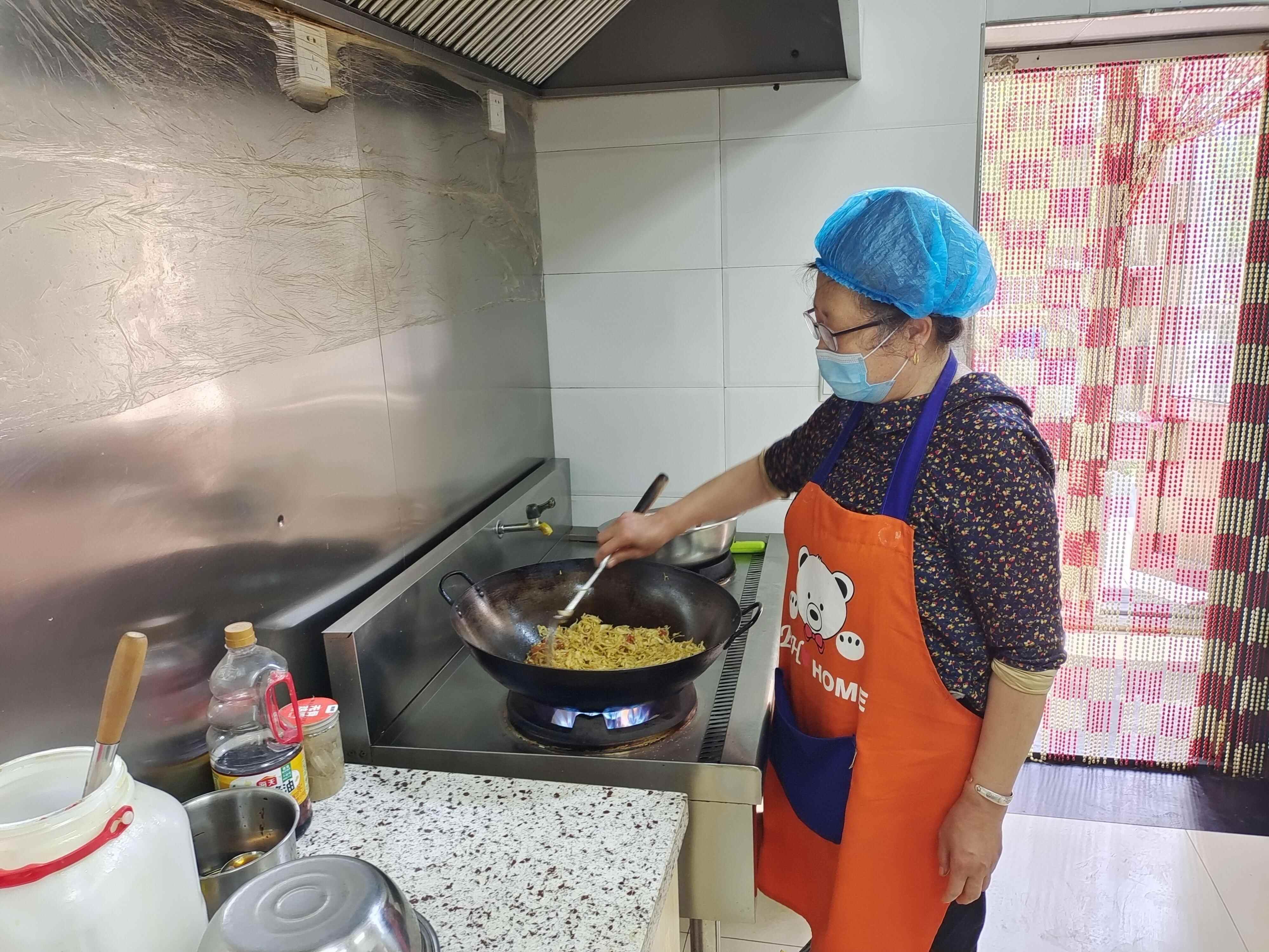 “土豆丝,白菜炖肉。”下午三点,走进长山花园的社区食堂,一股饭香扑面而来。“疫情期间,我们依旧保留了食堂,专门服务社区独居老人。严格消杀,营养搭配,送餐上门。”吴亚琴告诉记者。