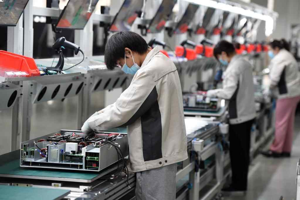 5月10日,工人在合肥科威尔电源系统股份有限公司生产车间进行装配。新华社记者 周牧 摄