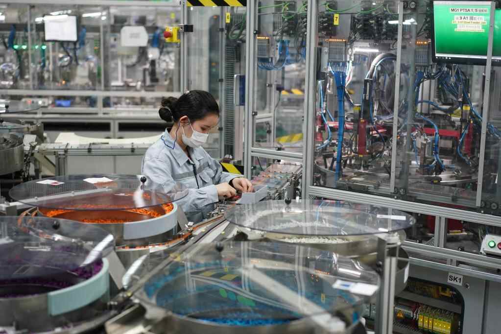 工作人员在位于南京市江宁开发区的一家企业车间忙碌(4月2日摄)。新华社记者 季春鹏 摄