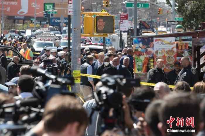 当地时间4月12日,美国纽约市布鲁克林区36街地铁站发生枪击案,大批警力和相关部门人员赶赴现场。中新社记者 廖攀 摄