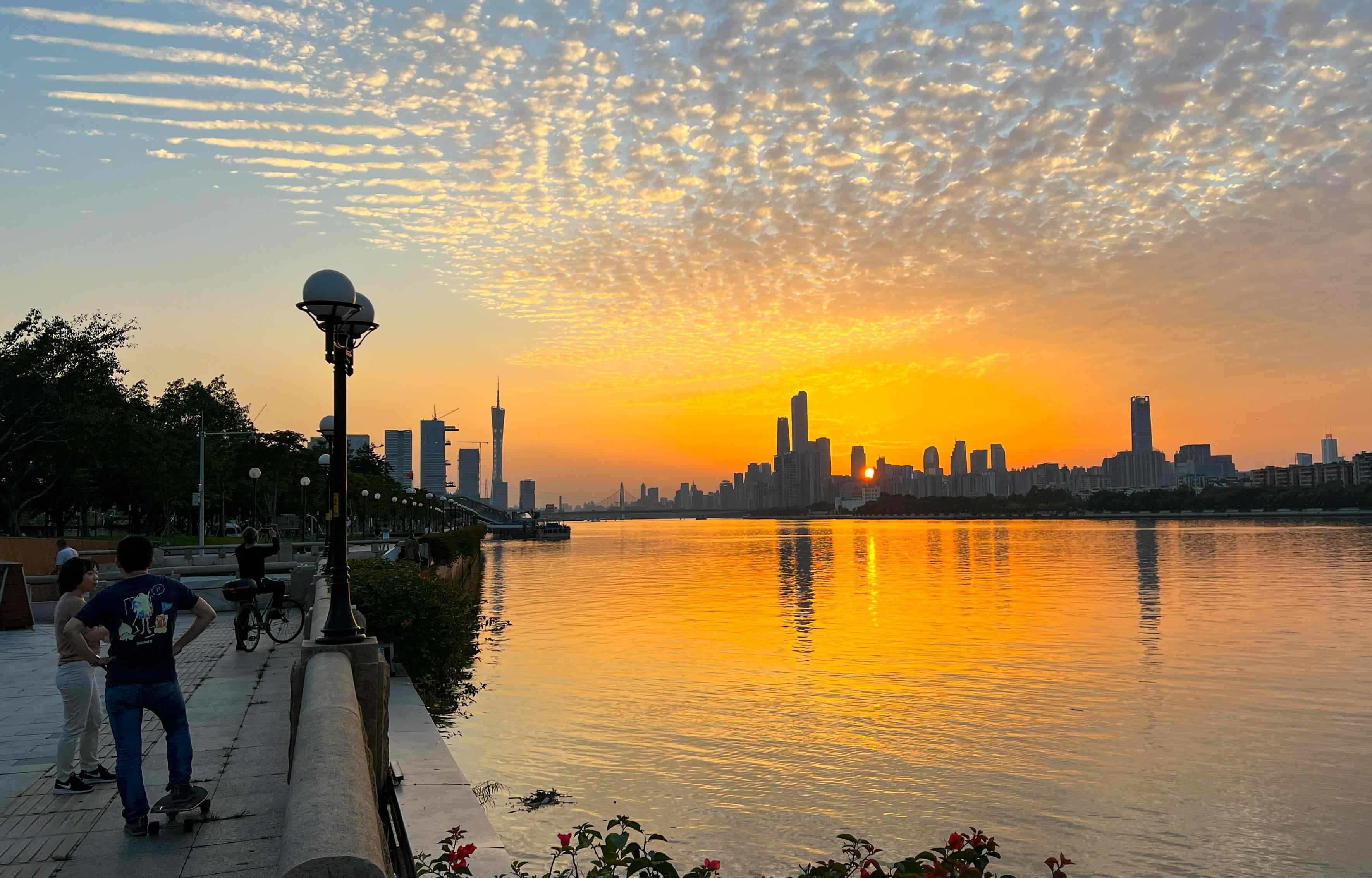 夕阳醉了,晚霞漫天。昨日(5月17日)傍晚,高积云如鱼鳞被夕阳染得金光闪闪,抬头那瞬间便治愈了下班路,一天的疲惫一扫而空。