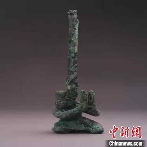 资料图:三星堆出土青铜扭头跪坐人像。 四川省文物考古研究院供图