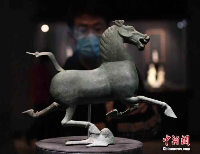 资料图:参观者欣赏甘肃省博物馆展出的“铜奔马”真品。中新社记者 杨艳敏 摄
