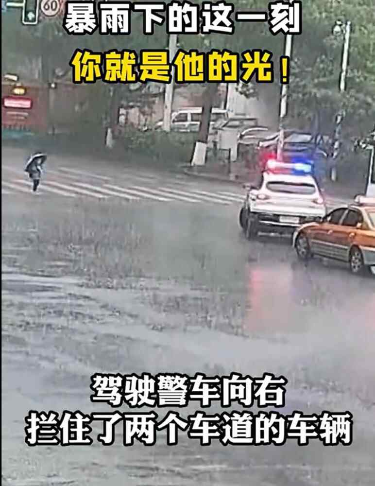 近日,株洲市石峰区建设北路杉木塘天桥东路口斑马线处,一名小学生独自过着马路,小小的身躯撑着小伞在暴雨中艰难前行。这时南北方向的绿灯亮了,孩子才走到马路中间,而车流也再次启动。正当他进退两难时,株洲交警石峰大队民警驾驶警车经过,当即向右打方向,拦住了两个车道的车辆,让孩子得以安全通过斑马线。