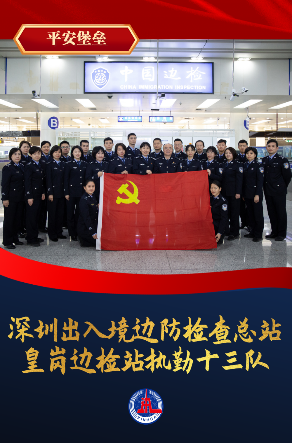 深圳出入境边防检查总站皇岗边检站执勤十三队,一支担负着深港联通枢纽——福田口岸出入境旅客查验和监护任务的队伍,用敢闯敢干的拼搏精神,书写移民管理警察勇立潮头的闪耀篇章。