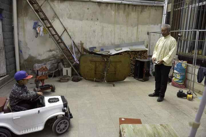 这是在拉萨市堆龙德庆区古荣镇拍摄的仁增(右)和他的家人(3月21日摄)。新华社记者 王泽昊 摄