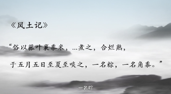 粽子由来久远,最初是用来祭祀祖先神灵的贡品。而端午节吃粽子的风俗,在魏晋时代已经盛行。西晋人周处所撰的《风土记》中记载:“俗以菰叶裹黍米,……煮之,合烂熟,于五月五日至夏至啖之,一名粽,一名角黍。”