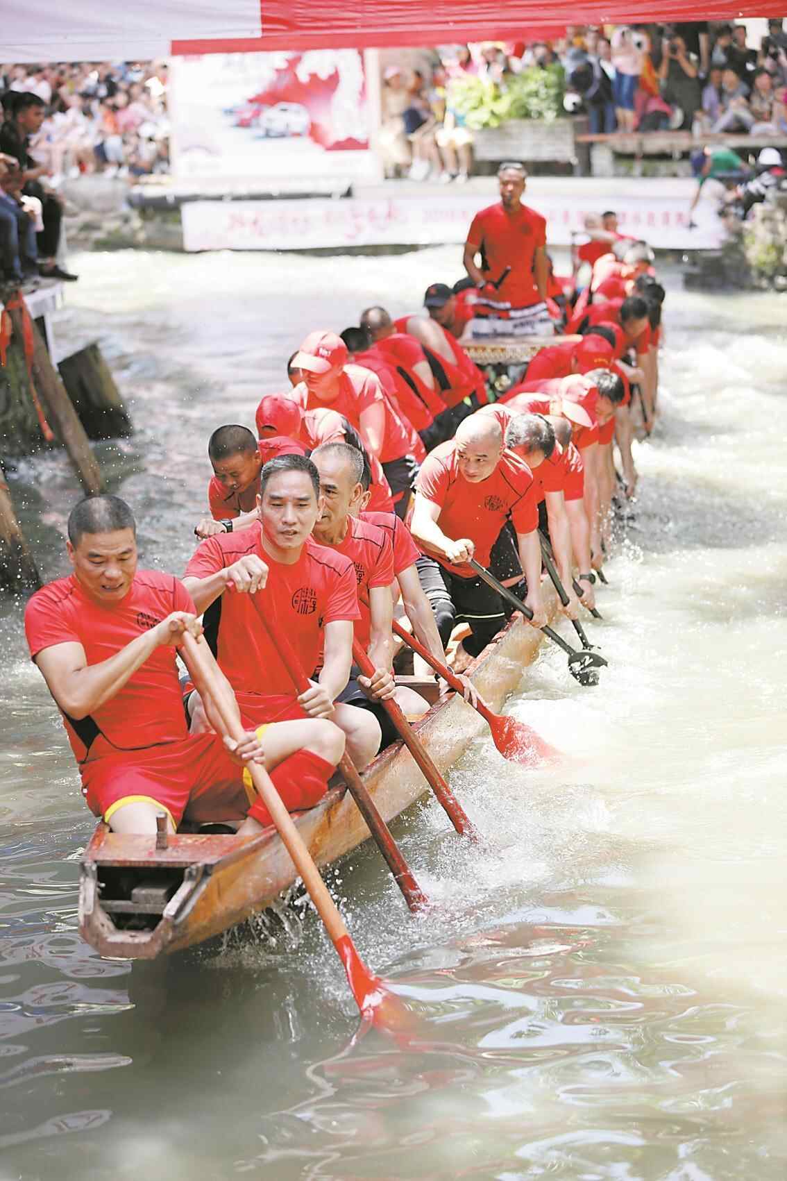 端午节假期,广东省内许多地方都会举办龙舟竞渡。其中,佛山叠滘的龙舟以弯道漂移闻名、广州车陂有十里八乡相聚的龙舟“车陂景”、阳江江城有“逆水行舟”赛、顺德黄连有“龙虱”个人赛、饶平所城有陆地“游旱龙”。地理位置和文化习俗存在差异,使不同地方龙舟竞赛方式各有千秋,构成了独具一番特色的龙舟竞渡景观。