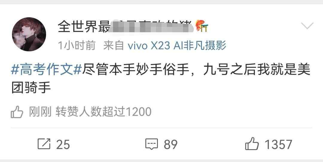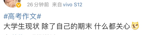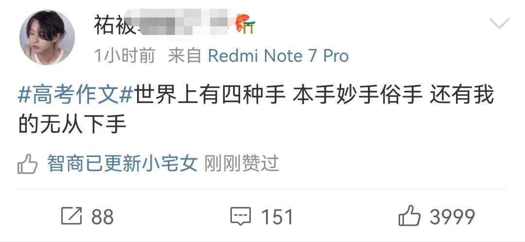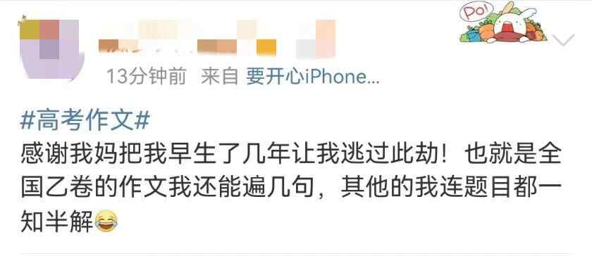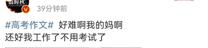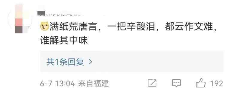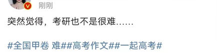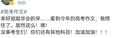 ⑧ “幸好姐姐毕业的早……看到今年的高考作文,我愣住了。居然这么!难!没事考生们!你们还有其他科目!加油加油!!!”