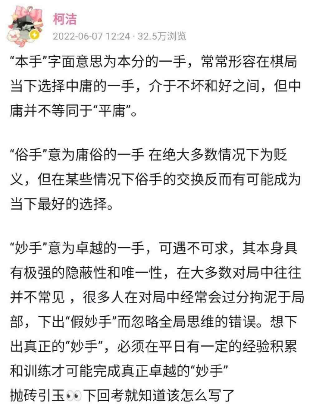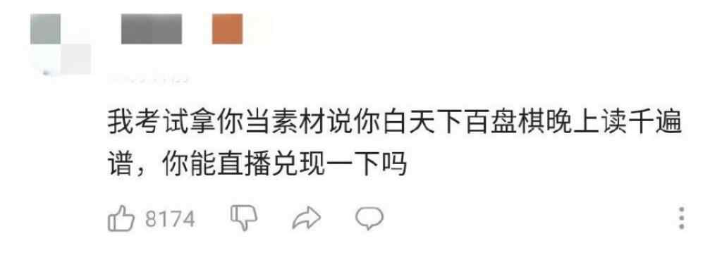 ① “我考试拿你当素材说你白天下百盘棋晚上读千遍谱,你能直播兑现一下吗”
