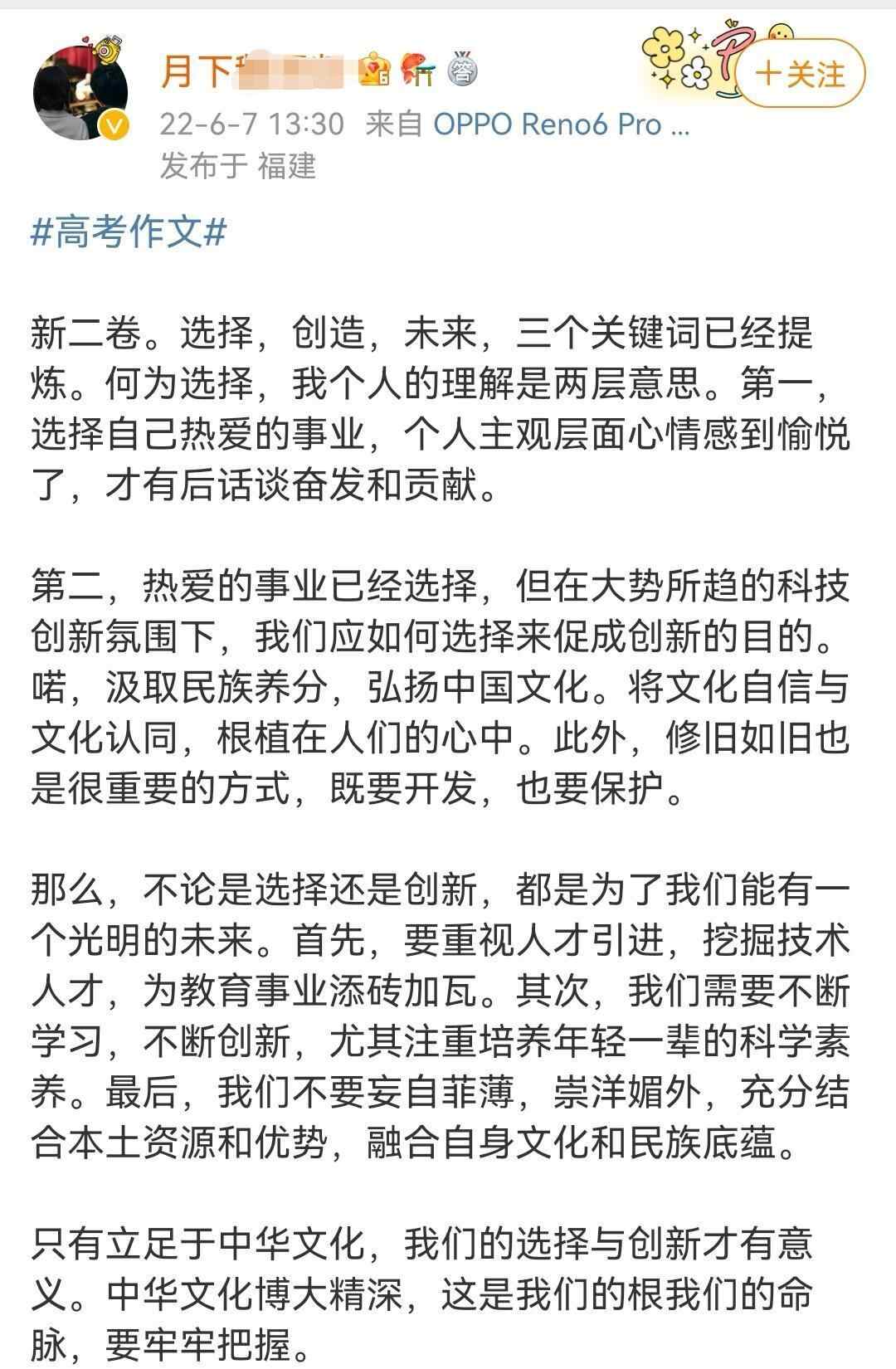 高考作文,每年都是网友们的热议重点,今年的作文题不出意料,也荣登各大社媒的热搜,网友通过热议高考,表达对高考的关心和祝福。