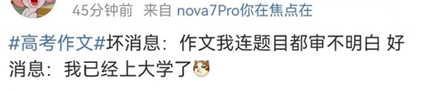 ⑥ “坏消息:作文我连题目都审不明白 好消息:我已经上大学了”