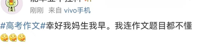 ② “幸好我妈生我早。我连作文题目都看不懂”