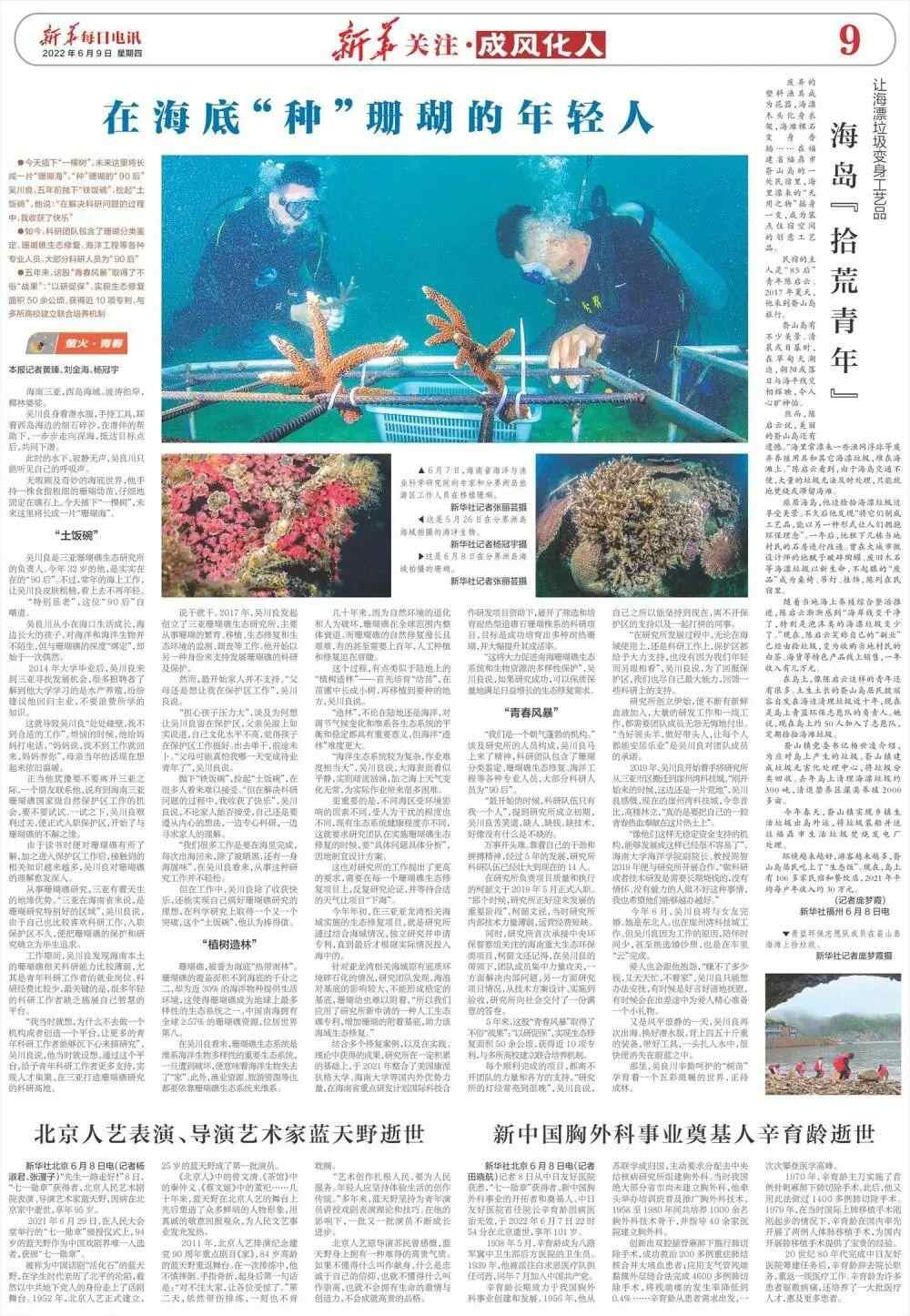 今天插下“一棵树”,未来这里将长成一片“珊瑚海”。“种”珊瑚的“90后”吴川良,五年前抛下“铁饭碗”,捡起“土饭碗”。他说:“在解决科研问题的过程中,我收获了快乐”