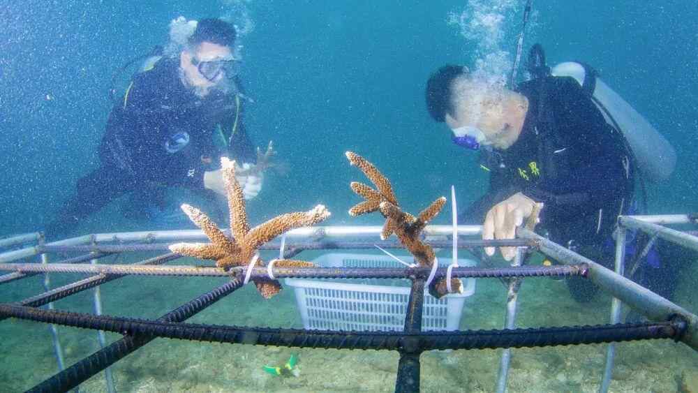 几十年来,因为自然环境的退化和人为破坏,珊瑚礁在全球范围内整体衰退。而珊瑚礁的自然修复漫长且艰难,有的甚至需要上百年,人工种植和修复迫在眉睫。