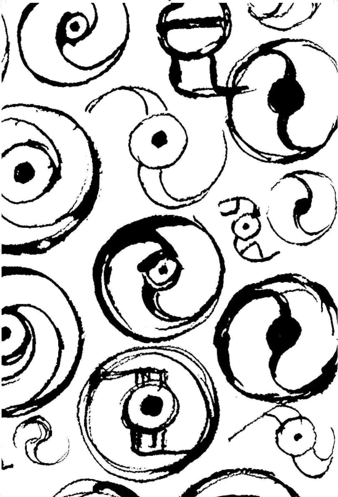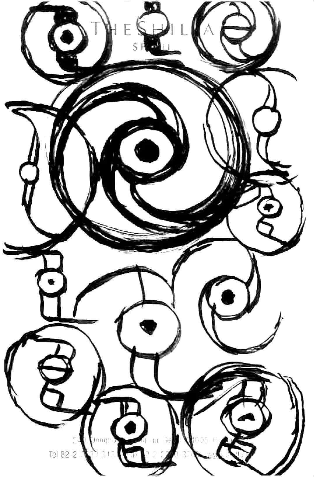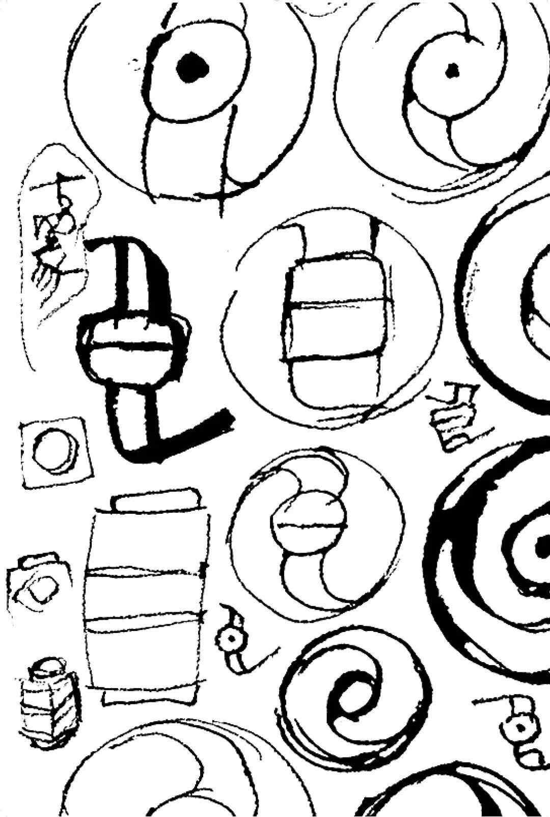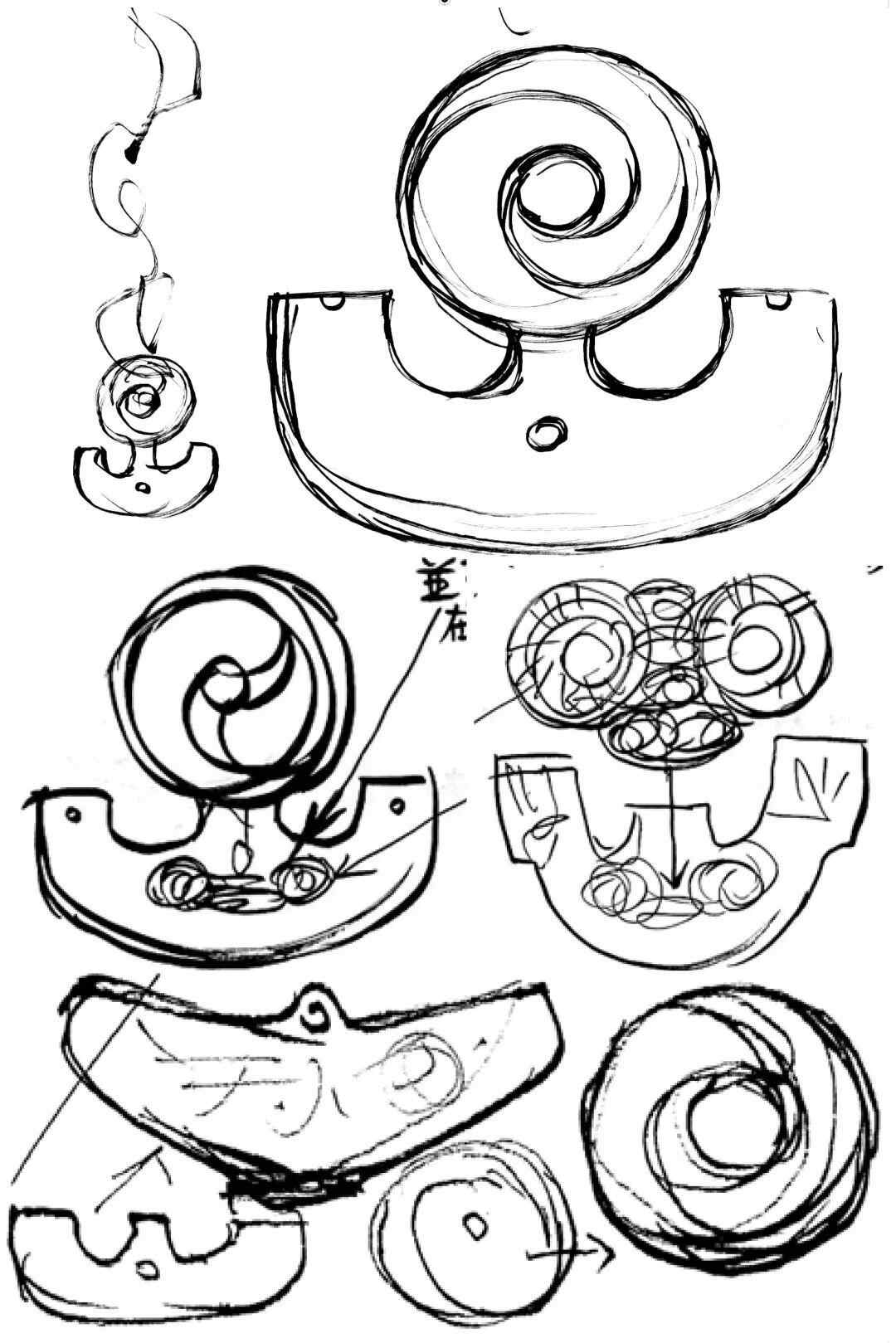 为了使雕塑设计兼具文化内涵和视觉审美,韩美林查阅了大量的相关史料,复印了数百页文物资料,绘制了无数质朴的线条和神秘的文字图案。从具象的火焰、玉器图案,到意象的江南山水,韩美林的手稿本里被各种良渚文化图案填满。