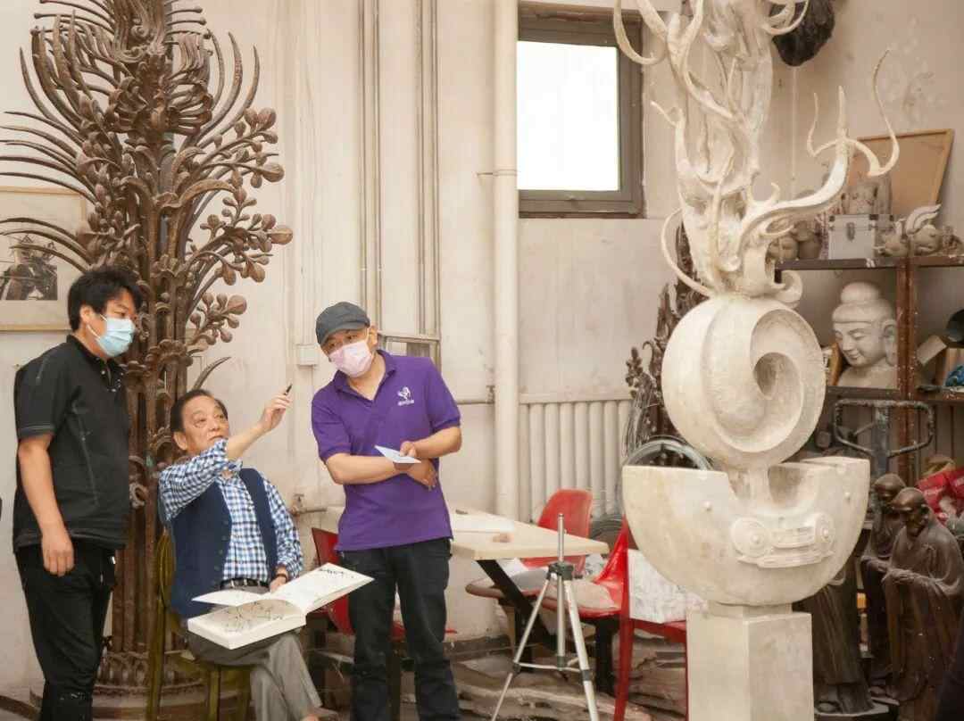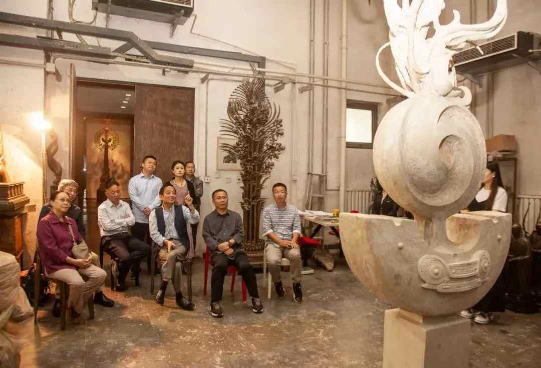 ▲韩美林邀请杭州良渚遗址管委会的领导、良渚文化的专家,来到北京韩美林艺术馆,座谈讨论