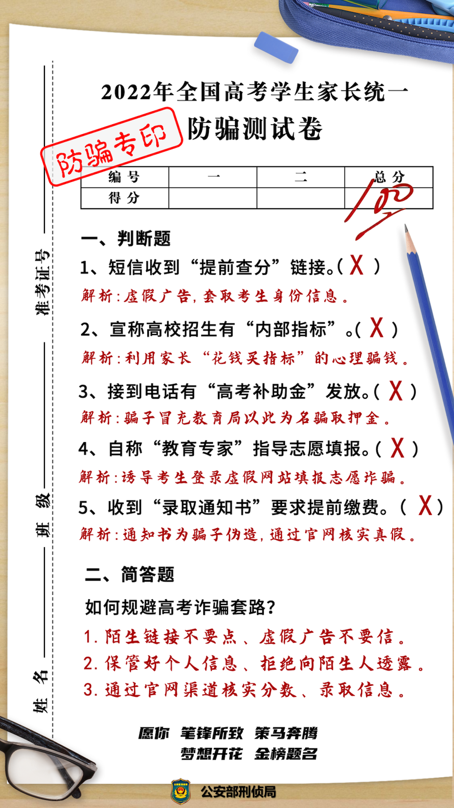 近日,公安部刑侦局发布提示,提醒考生和家长警惕针对高考考生的五大常见电信网络骗局。