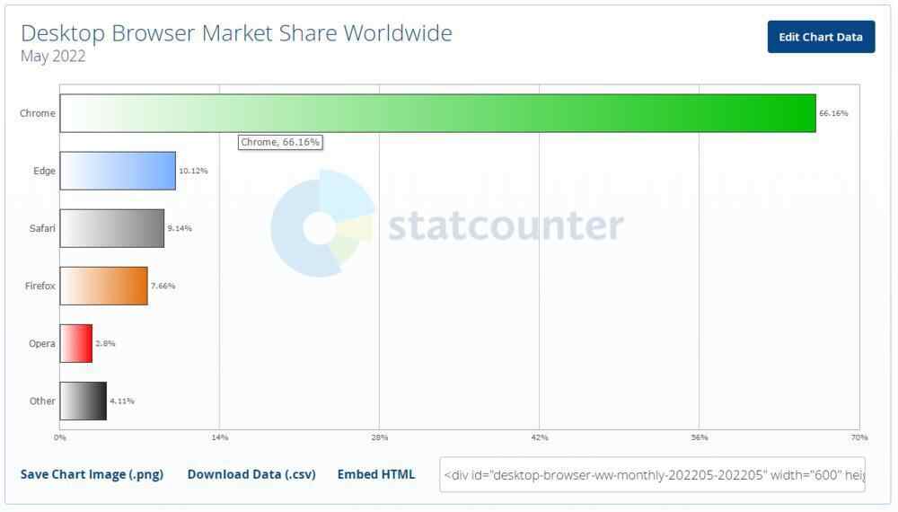 市场就是这样,你慢了,别人就会超越。在IE浏览器缓慢更新的时间里,市面上百花齐放,国外出现了苹果Safari浏览器、谷歌Chrome浏览器、火狐浏览器等,国内也有360、百度、搜狗、QQ、UC等等浏览器。这些产品迅速迭代完善,吸引了大量用户,蚕食了原IE浏览器的市场份额。据第三方网络分析公司的数据,今年4月,在电脑PC端,Chrome浏览器以66.64%的市场份额独占鳌头。
