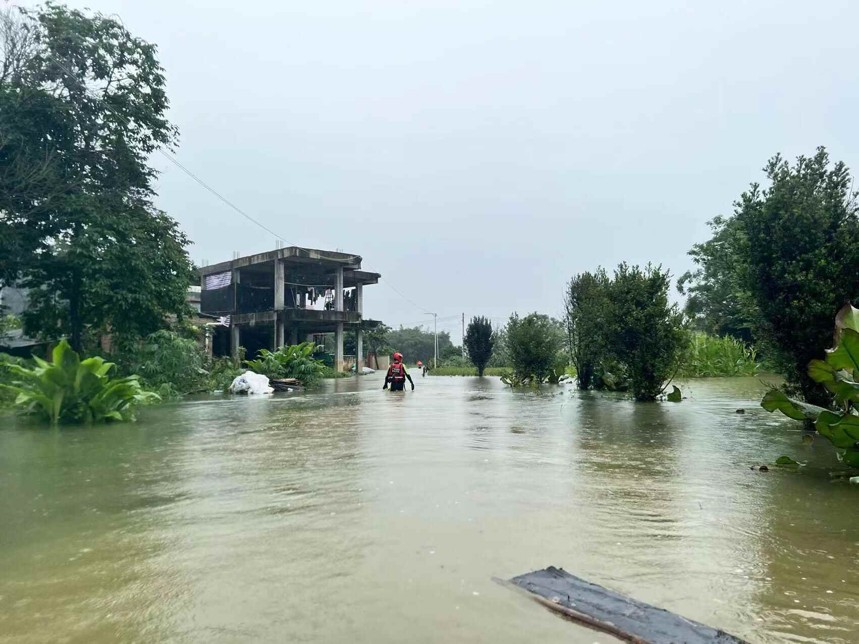 6月14日8时12分,位于清远英德市桥头镇板浦村委会附近,有房屋被淹,群众被困。接到报警后,英城消防救援站立即出动2辆消防车前往现场救援。救援人员到达现场发现,该村庄因突发洪涝将通往被困房屋的道路全部淹没,水深处近1米,水面宽度将近2公里,多处民房被淹,有20余名群众因无法自行撤离被困家中。
