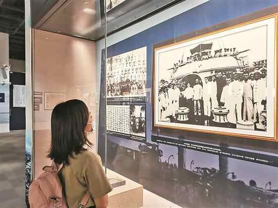 观众参观“舰证中山魂——孙中山与中山舰事迹展”