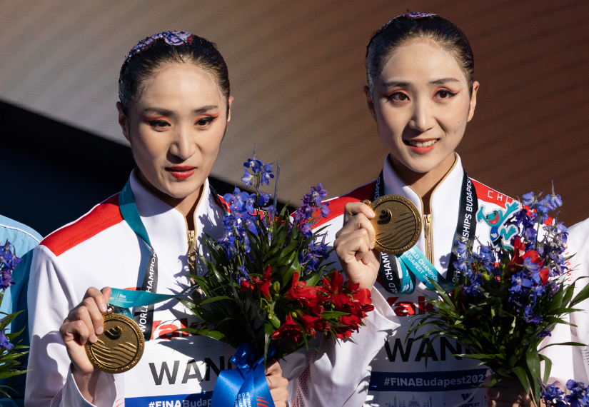 ◆在布达佩斯征战游泳世锦赛的广东姐妹花创中国花泳历史,“她们还能拿更多金牌”。详情-->
