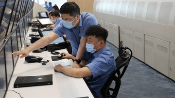 中国铁路乌鲁木齐局集团有限公司调度所内,工作人员正在进行行车调度组织。(受访者供图)