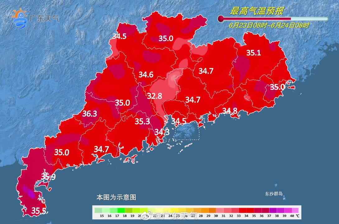 6月23日8时至6月24日8时,广东不少地方将有35℃或以上高温 广东省气象台制图