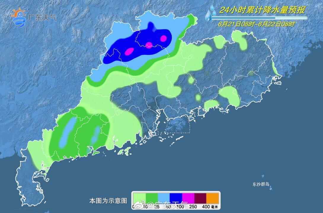 6月21日8时至6月22日8时,预计广东北至西北部仍有暴雨量级降水 广东省气象台制图
