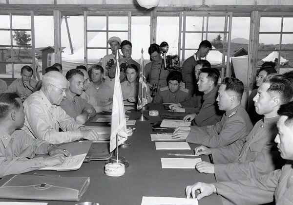 ▲1953年7月27日,朝鲜停战协定签字仪式在开城板门店举行。