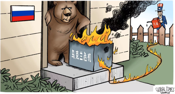 ▲俄乌冲突爆发以来,美国不断火上浇油,企图通过代理人战争打垮俄罗斯。 (漫画 | 刘蕊)