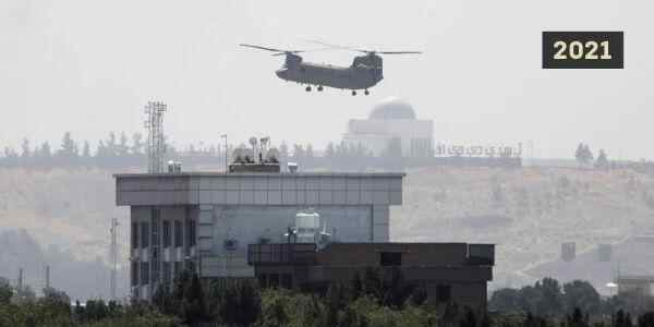 ▲2021年8月15日清晨,美军CH-47“支奴干”双旋翼直升机飞抵美国驻阿富汗大使馆上空,撤离美方工作人员。