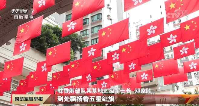 驻香港部队某基地二级军士长 邓家胜:香港回归25周年,香港的大街小巷已经有了庆回归的氛围,到处都飘扬着五星红旗。