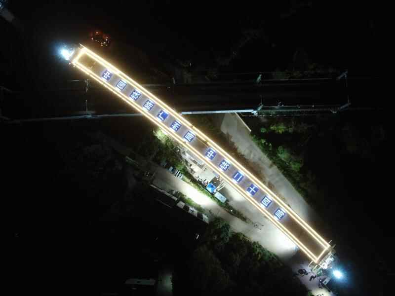 29日凌晨,博贺港铁路跨广茂线深湛线特大桥施工现场灯火通明,在50余名施工人员紧张有序地的分工协作下,一座高10米跨广茂线深湛线特大桥T构转体梁正沿顺时针方向缓缓转动,进行空中转体。